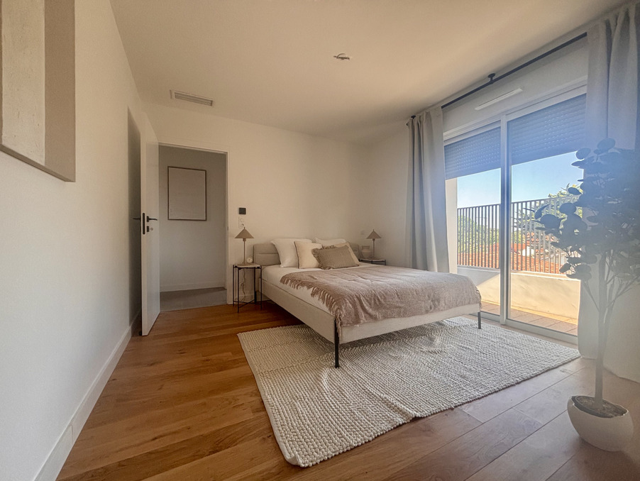 Baigné de lumière grâce à son exposition plein sud, il séduit par son vaste séjour prolongé d'une terrasse offrant une vue dégagée sur les Pyrénées. Les finitions haut de gamme et les matériaux soigneusement sélectionnés confèrent à cet appartement une atmosphère à la fois contemporaine et élégante., mais aussi authentique avec les poutres apparentes et la hauteur sous-plafond unique dans la résidence.