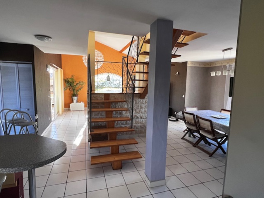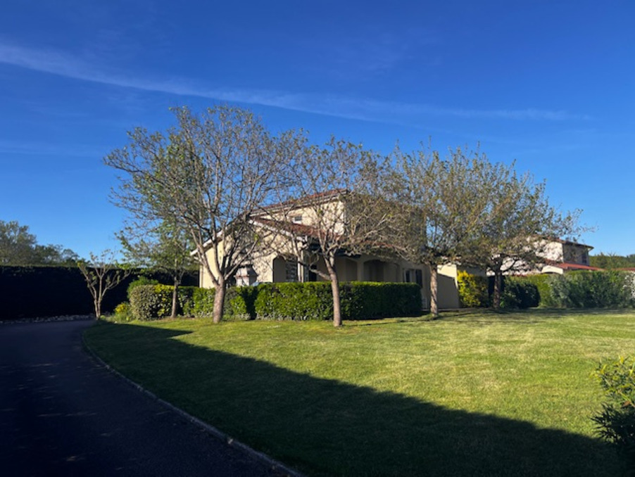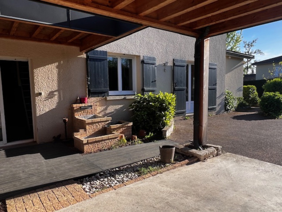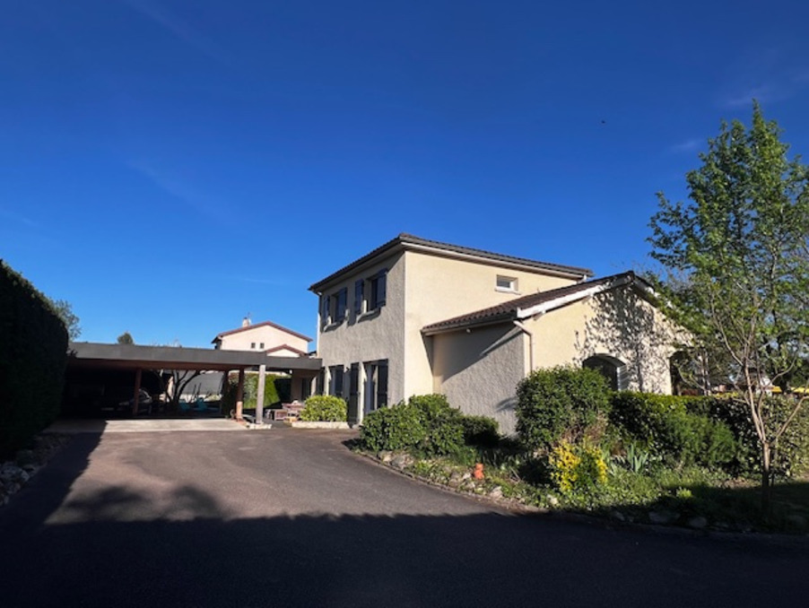 Belle Maison à balbigny sur une terrain paysagé de 1391m2 dans un environnement très calme. située à 7mn de l'autoroute et 10mn du collège à pied. Elle comprend au rdc un salon, une salle à manger, une cuisine ouverte, un bureau et un WC. En empruntant un bel escalier vous arrivez à l'étage où se trouvent 3 chambres, une salle de bain avec douche et un WC séparé. À la place du garage d'origine il y a une chambre avec salle d'eau, une pièce de rangement et un grenier en mezzanine et une buanderie. Et pour finir, à l'extérieur se trouve un carport de 115m2 avec tous les réseaux pouvant servir de terrasse couverte ou d'abris pour 5 voitures. Le terrain est entièrement clos et l'accès se fait par un portail motorisé donnant sur une belle allée goudronnée. Entretien de la pelouse par un robot tondeuse et chauffage de la maison par une pompe à chaleur ( DPE B) .Confort, économies et détente assurés.