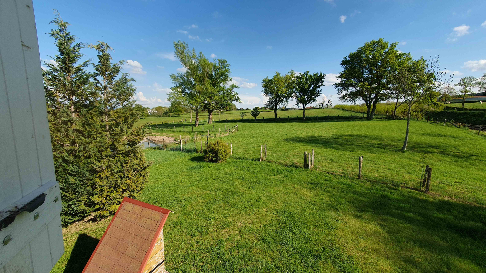 A l'extérieur, vous disposerez d'une belle vue ,d'une terrasse sur un bel étang privatif. Un appentis pour votre véhicule.