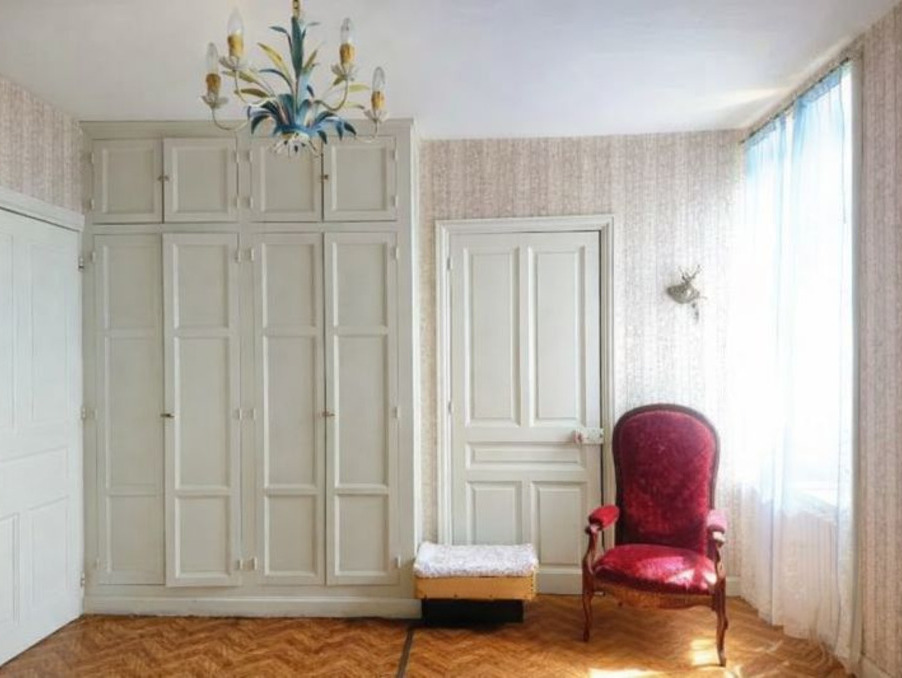 Un escalier bois vous conduit sur un point d'eau et trois chambres, disposition à améliorer. Imaginez un intérieur à votre image.