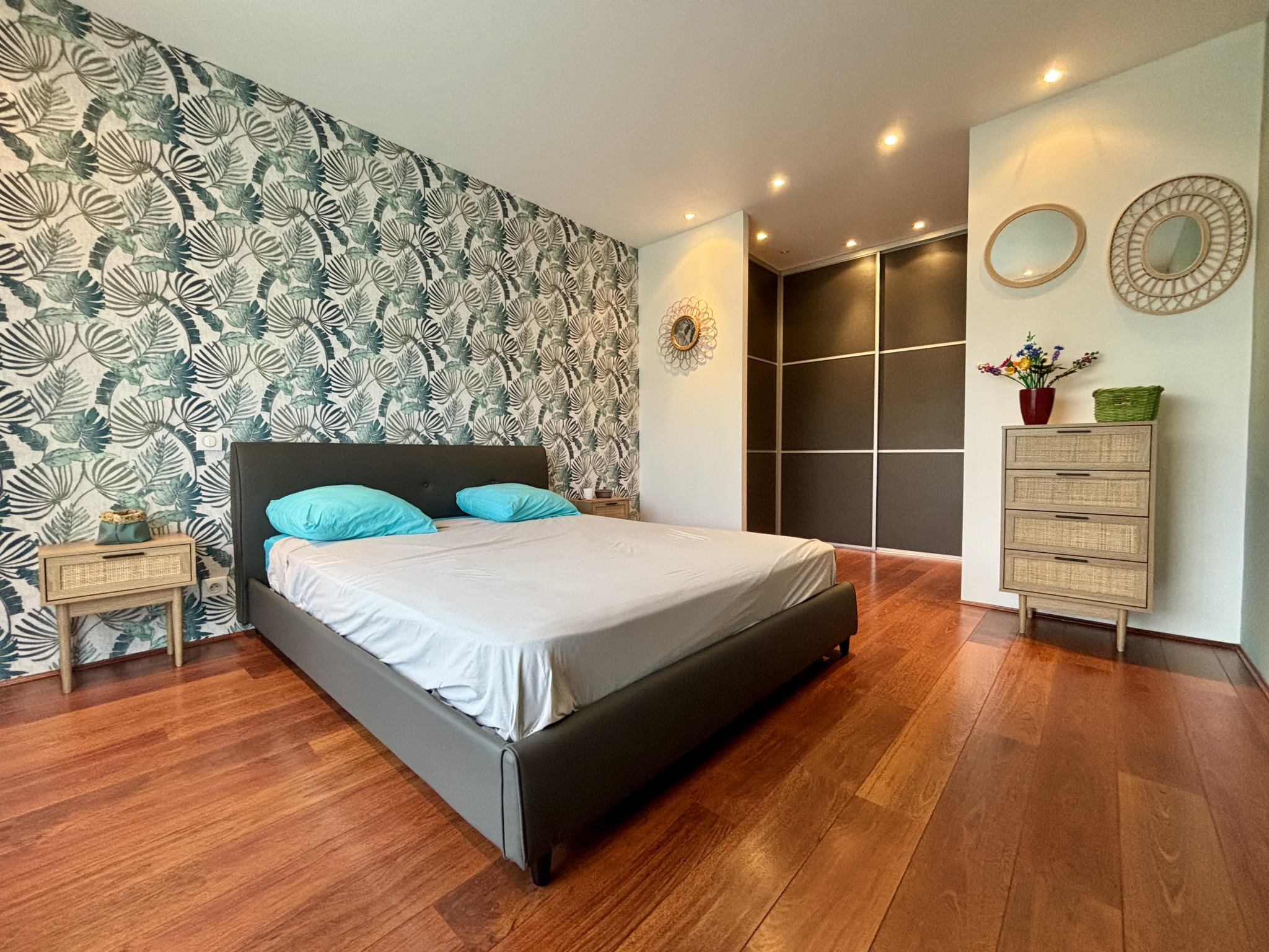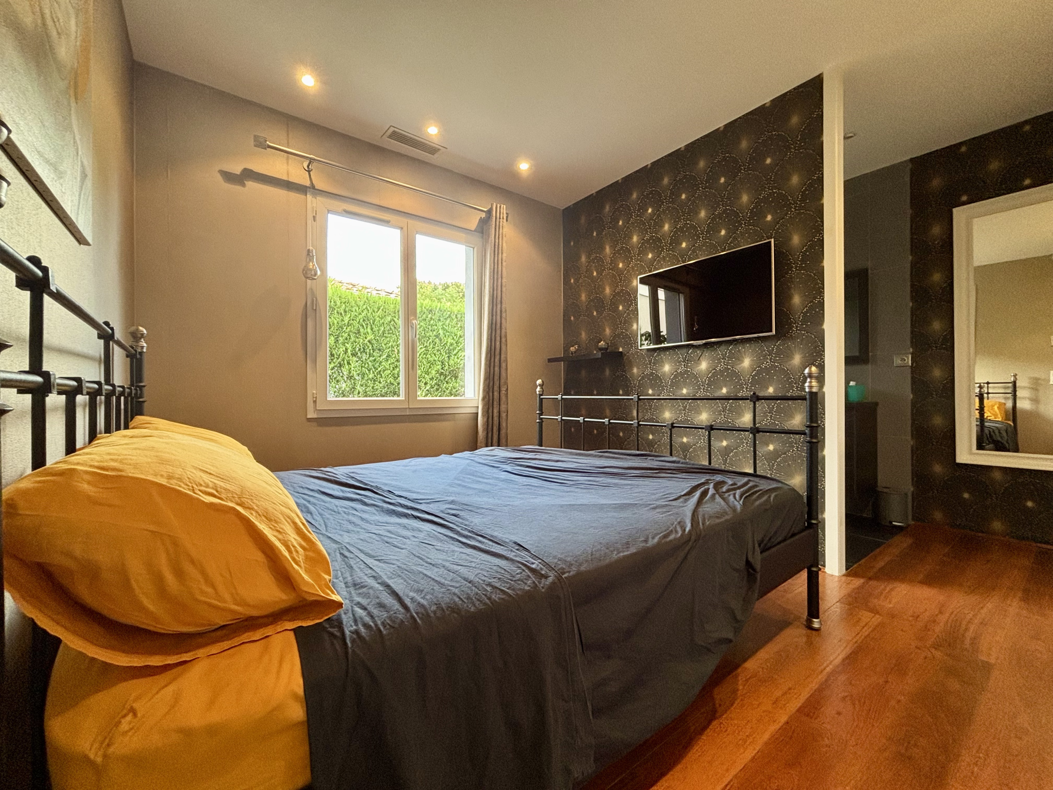 L'espace nuit comprend deux chambres, un bureau, ainsi qu'une grande salle de bains avec douche à l'italienne et baignoire. La suite parentale, idéalement isolée du reste de la maison, dispose de son propre espace dressing et salle d'eau privative.