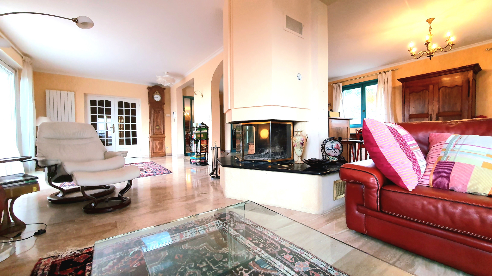 En sous-sol un grand garage, un grand bureau, cave et cellier.